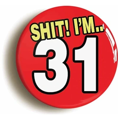 Ozorath 31ST THIRTY FIRST BIRTHDAY SH1T FUNNY BUTTON BADGE (Size is 2inch/50mm diameter)