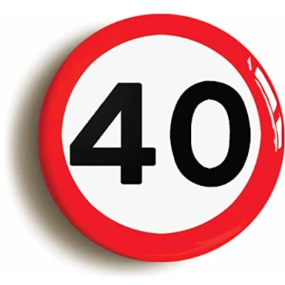 Ozorath 40TH FORTIETH BIRTHDAY MPH ROAD SIGN BADGE BUTTON PIN (Size is 2inch/50mm diameter)