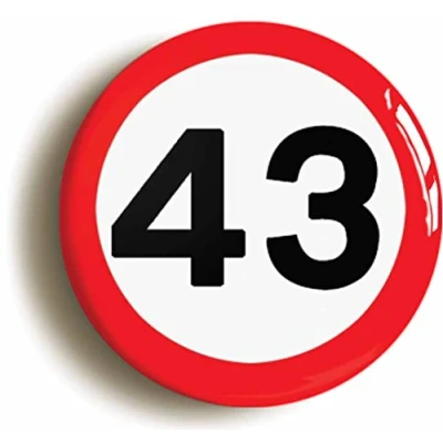 Ozorath 43RD FORTY THIRD BIRTHDAY MPH ROAD SIGN BADGE BUTTON PIN (Size is 2inch/50mm diameter)