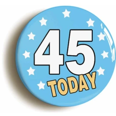 Ozorath 45 Forty Five Today Fifth 45th Birthday Button Badge (Size is 2inch / 50mm diameter)