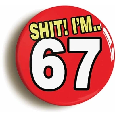 Ozorath 67TH SIXTY SEVENTH BIRTHDAY SH1T FUNNY BUTTON BADGE (Size is 2inch/50mm diameter)