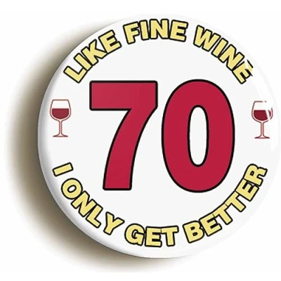 Ozorath 70TH SEVENTIETH BIRTHDAY LIKE FINE WINE FUNNY BUTTON BADGE (Size is 2inch/50mm diameter)