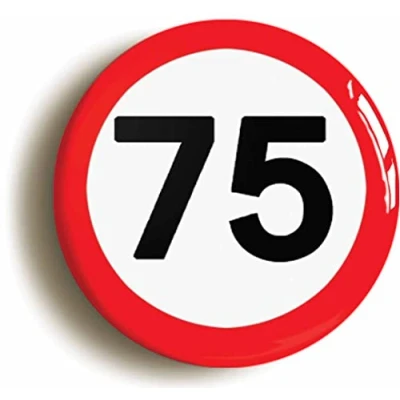 Ozorath 75TH SEVENTY FIFTH BIRTHDAY MPH ROAD SIGN BADGE BUTTON PIN (Size is 2inch/50mm diameter)