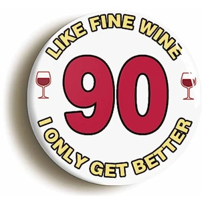 Ozorath 90TH NINETIETH BIRTHDAY LIKE FINE WINE FUNNY BADGE (Size is 2inch/50mm diameter)