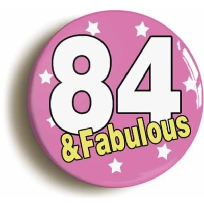 Ozorath EIGHTY FOUR AND FABULOUS 84TH BIRTHDAY BUTTON BADGE (Size is 2inch/50mm diameter)