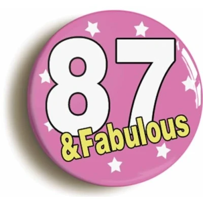 Ozorath EIGHTY SEVEN AND FABULOUS 87TH BIRTHDAY BUTTON BADGE (Size is 2inch/50mm diameter)