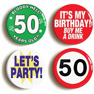 Ozorath FIFTIETH 50TH BIRTHDAY Badge BUTTON PIN GIFT SET (Each is 2inch/50mm diameter)