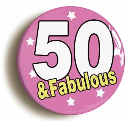 Ozorath FIFTY AND FABULOUS 50TH BIRTHDAY BUTTON BADGE (Size is 2inch/50mm diameter)
