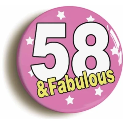 Ozorath FIFTY EIGHT AND FABULOUS 58TH BIRTHDAY BUTTON BADGE (Size is 2inch/50mm diameter)