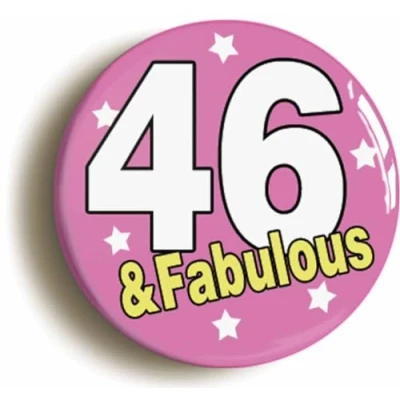 Ozorath FORTY SIX AND FABULOUS 46TH BIRTHDAY BUTTON BADGE (Size is 2inch/50mm diameter)