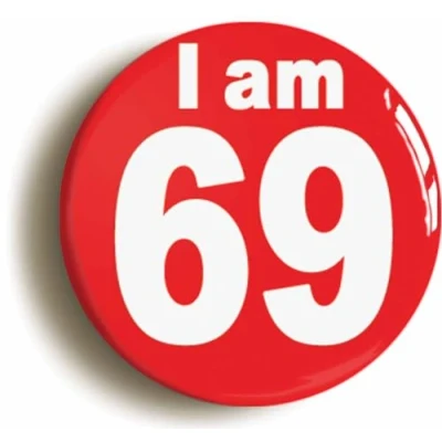 Ozorath I Am 69 Sixty Nine Ninth 69th Birthday Retro Button Badge (Size is 2inch / 50mm diameter)