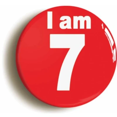 Ozorath I Am 7 Seven Seventh 7th Birthday Retro Button Badge (Size is 2inch / 50mm diameter)