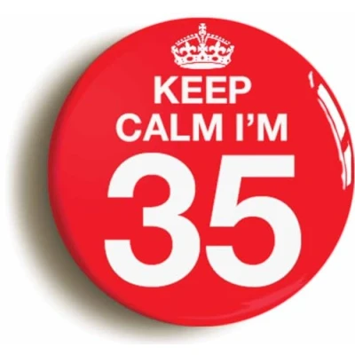 Ozorath Keep Calm I'm 35 Thirty Five Fifth 35th Birthday Button Badge (Size is 2inch / 50mm diameter)