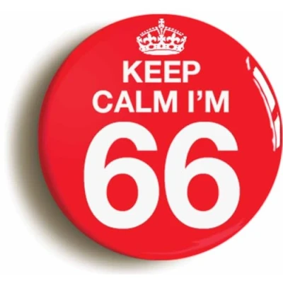 Ozorath Keep Calm I'm 66 Sixty Six Sixth 66th Birthday Button Badge (Size is 2inch / 50mm diameter)