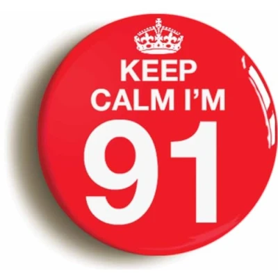 Ozorath Keep Calm I'm 91 Ninety One First 91st Birthday Button Badge (Size is 2inch / 50mm diameter)