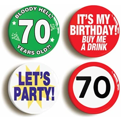 Ozorath SEVENTIETH 70TH BIRTHDAY Badge BUTTON PIN GIFT SET (Each is 2inch/50mm diameter)