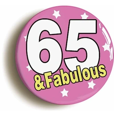 Ozorath SIXTY FIVE AND FABULOUS 65TH BIRTHDAY BUTTON BADGE (Size is 2inch/50mm diameter)