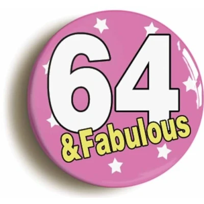 Ozorath SIXTY FOUR AND FABULOUS 64TH BIRTHDAY BUTTON BADGE (Size is 2inch/50mm diameter)