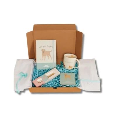 P Dot Wolf Dog Gift Set, Set For Women, Gifts Sets with Dogs, 4 Piece Notebook, Pen, Mug & Coaster (Labrador Set)