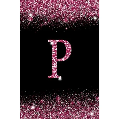 P: Letter P Initial Alphabet Monogram Notebook Monogrammed confetti Writing Journal Printed Glitter Black and pink, Diary Planner Gift For Kids Girls Women
