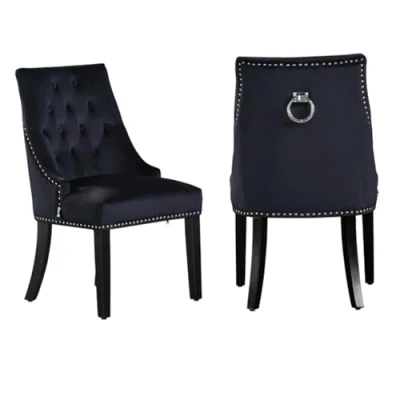 P&N Homewares Windsor Chair Black (2 SET) Tufted Velvet Fabric Door Knocker Studded Dining Upholstered Accent Side FREE NEXT DAY DELIVERY