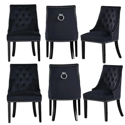 P&N Homewares Windsor Chair Black (6 SET) Tufted Velvet Fabric Door Knocker Studded Dining Upholstered Accent Side FREE NEXT DAY DELIVERY