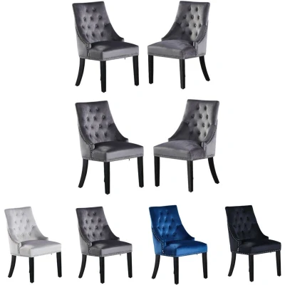 P&N Homewares Windsor Chair Grey (4 SET) Tufted Velvet Fabric Door Knocker Studded Dining Upholstered Accent Side FREE NEXT DAY DELIVERY