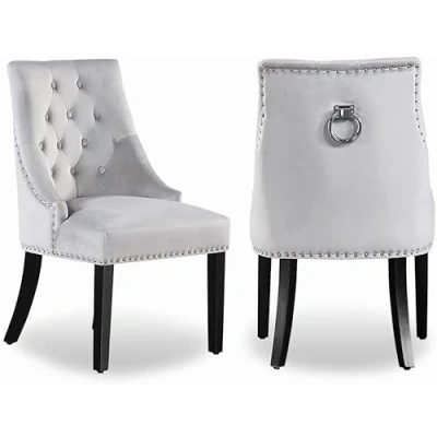 P&N Homewares Windsor Chair Light Grey (2 SET) Tufted Velvet Fabric Door Knocker Studded Dining Upholstered Accent Side FREE NEXT DAY DELIVERY