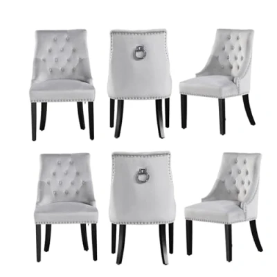P&N Homewares Windsor Chair Light Grey (6 SET) Tufted Velvet Fabric Door Knocker Studded Dining Upholstered Accent Side FREE NEXT DAY DELIVERY