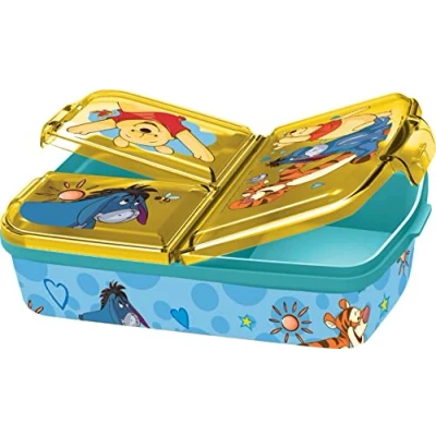 p:os Winnie The Pooh Lunch Box for Children with 3 Compartments, Plastic Clip Closures, Nursery, School and Leisure