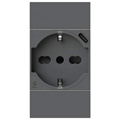 The P40 USB3.0 is a P40 socket and a 3 Amp USB power supply equipped with a type C connector built into just 2 modules, ensuring simultaneous use and charging speed. A Type C to Type A connector adapter included in the package This extraordinary socket ensures the simultaneous use of both the power outlet and the USB socket represents a truly unique solution. The P40 USB3.0 is so powerful that it allows you to connect product categories such as laptops, which in the past was unthinkable to charge with a civilian USB socket. The socket has a single power point for both sockets and is positioned to make the wiring quick and easy. Perfect aesthetic compatibility with major civil series, Manufacturer: 4box s.r.l.