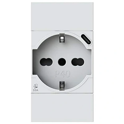 The P40 USB3.0 is a P40 socket and a 3 Amp USB power supply equipped with a type C connector built into just 2 modules, ensuring simultaneous use and charging speed. A Type C to Type A connector adapter included in the package This extraordinary socket ensures the simultaneous use of both the power outlet and the USB socket represents a truly unique solution. The P40 USB3.0 is so powerful that it allows you to connect product categories such as laptops, which in the past was unthinkable to charge with a civilian USB socket. The socket has a single power point for both sockets and is positioned to make the wiring quick and easy. Perfect aesthetic compatibility with major civil series, Manufacturer: 4box s.r.l.