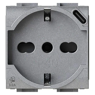 The P40 USB3.0 is a P40 socket and a 3 Amp USB power supply equipped with a type C connector built into just 2 modules, ensuring simultaneous use and charging speed. A Type C to Type A connector adapter included in the package This extraordinary socket ensures the simultaneous use of both the power outlet and the USB socket represents a truly unique solution. The P40 USB3.0 is so powerful that it allows you to connect product categories such as laptops, which in the past was unthinkable to charge with a civilian USB socket. The socket has a single power point for both sockets and is positioned to make the wiring quick and easy. Perfect aesthetic compatibility with major civil series, Manufacturer: 4box s.r.l.