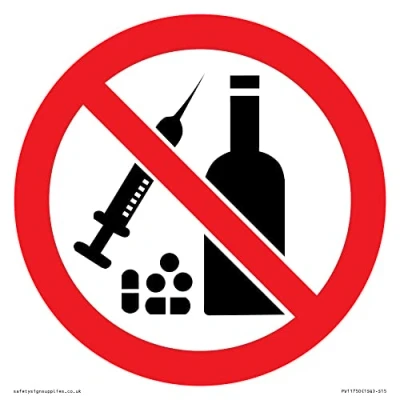 P908 Prohibition: No alcohol or drugs Sign 150x150mm S15