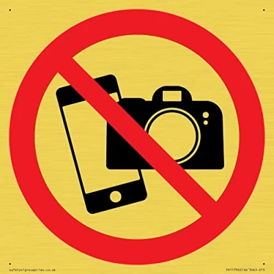 P932 Prohibition: No filming or photography Sign 150x150mm S15
