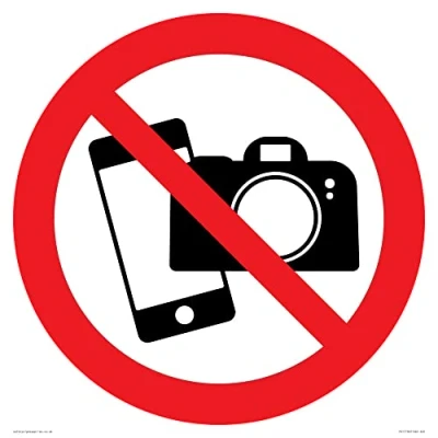 P932 : No filming or photography This sign is made from plastic semi rigid 1mm self adhesive S40 square Sign Text: