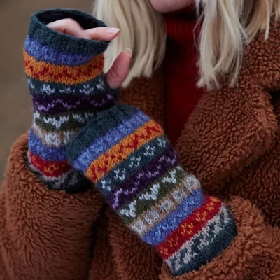Thermal Insulation: 100% wool and fleece-lined hand warmers for warmth and comfort outdoors in cold weather Versatile and Functional: One-size women's design for everyday Winter wear, keeping wrists and hands warm while leaving fingers free for activities Handmade Quality: Woollen fingerless wrist warmers with thumbslots handcrafted from pure sheep wool using traditional knitting methods Eco-Friendly: Pachamama hand warmers are a Fairtrade ethical choice, supporting sustainable livelihoods for artisan communities Distinctive Style: With a colourful fairisle stripe, hand knitting makes each pair of handwarmers unique