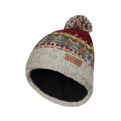 Harts of SturThe Pachamama Iona Burgundy Roll Back Bobble Beanie has been hand knitted from a wool blend and for added comfort, features Sherpa fleece lining around the forehead. Designed with traditional fairisle pattern and finished with a large bobble.Perfect for keeping you warm and cosy during the colder months.Matching accessories available.Handmade in Nepal from 100% Wool with 100% Polyester Sherpa Fleece Lining.Machine wool wash or cool handwash.PLEASE NOTE colours and patterns may vary slightly due to their hand made nature.