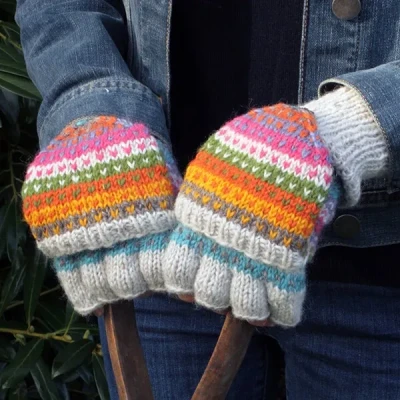 Thermal Insulation: Women's one size sheep wool fingerless gloves with button back fold over mittens to keep hands warm and comfortable in cold weather Versatile and functional: These warm glove mitts for winter keep wrists and hands warm while leaving fingers free for activities, but with the benefit of being able to convert to mittens Handmade Quality: Each pair individually handcrafted from 100% pure sheep wool using traditional knitting techniques Eco-Friendly: Pachamama woollen glove mitts are a Fairtrade ethical choice, supporting sustainable livelihoods for artisan communities Distinctive Style: With a multicoloured dotted stripe, the colours used are as shown, but the handknitted sequence of colours may vary, making each pair unique.
