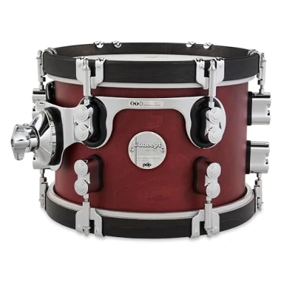 Pacific Drums Concept classic Tom, 10" x 7", Ox Blood Stain, Ebony Stain hoops Features modern and looks with Maple shells counter