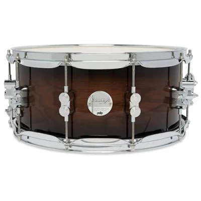 Pacific Drums Concept Maple Snare Drum, 14" x 6.5", exotic Walnut to Charcoal all shells with an veneer, DW hardware, and more