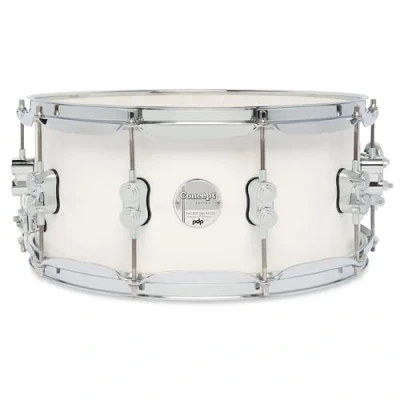 Pacific Drums Concept Maple Snare Drum, 14" x 6.5", Pearlescent White Lacquer Features a 10 ply European shell and high end DW drum hardware
