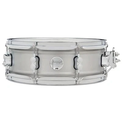 Pacific Drums Concept Series Metal Snare, 14" x 5", 1.2mm Natural Satin brushed aluminum a snare with rolled shell for round tone and dry resonance exterior
