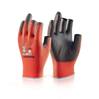 Pack of 10 Beeswift PU COATED 3 FINGERLESS GLOVE L (SIZE 9) Red