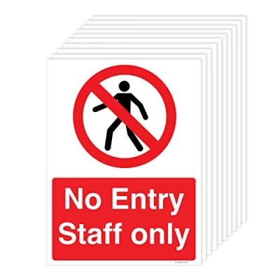 Pack of 10 Staff Only Self Adhesive Waterproof No Entry Signs (150 x 200 mm) Sign Sticker for Offices, Doors Sara Prints®