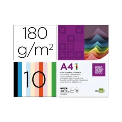 Pack of 100 Coloured Card A4 180g 10 Colours
