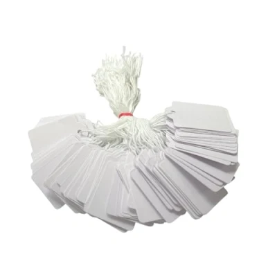 Pack of 100 Large White Strung Tags 36 x 53mm. Ideal for labeling, pricing, or organising, These large strung tags offers a practical and professional solution. Each tag is made from durable white card and comes pre-strung with white cotton thread for quick and easy attachment. With a generous writing area (36 x 53mm), these tags are perfect for retail, events, crafts, or storage needs.