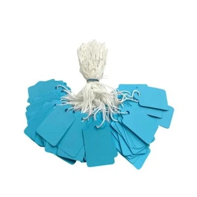Pack of 100 Medium Blue Strung Tags 25 x 39mm. Keep your items clearly labeled and stylishly organised with this pack of 100 Medium Blue Strung Tags. Each tag measures 25 x 39mm and is made from strong white card, offering a smooth surface for easy writing. Pre-fitted with white string, these tags are ready to use for pricing, gifting, inventory management, or craft projects.