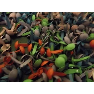 Pack of 100 Mixed Pastel Round 9mm x 5mm Brads. Includes Pink, Blue, Purple, Green and Red.