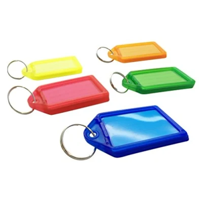 Pack of 100 Small Identity Tag Key Rings by Janrax. Approx Size of Tag: 28x55mm. Approx Size of Insert: 22x38mm. Keep your keys organised with these handy and convenient plastic key tags. Allowing you to insert a written tab into the fob easily by sliding open. Durable and hardwearing construction. More colour and sizes available from the Janrax range